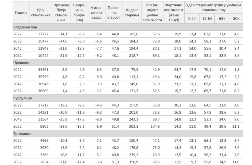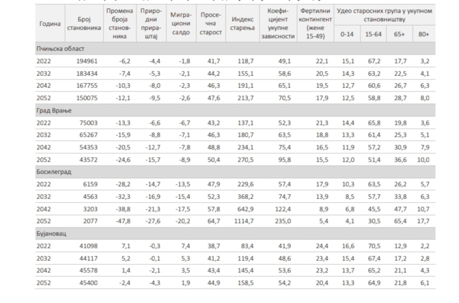 Izuzimajući Bujanovac i Preševo, crne prognoze Republičkog zavoda za statistiku odnose se na ceo Region južne i istočne Srbije. Kako se navodi u Projekcijama stanovništva 2022-2052 ovaj region beleži najveći intenzitet smanjenja stanovništva i taj tred će se nastaviti i naredne tri decenije.