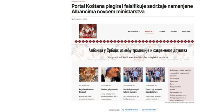 DRUŠTVONASLOVNAReagovanje portala “Koštana” na tekst Bujanovačkih Bujanovac, 3. decembar 2025. – Portal Koštana reagovao je na naš tekst “Portal Koštana plagira i falsifikuje sadržaje…3. December 2025.