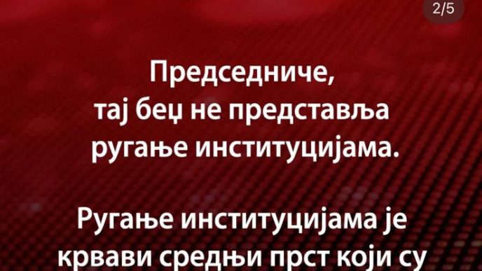 DRUŠTVONASLOVNATužilaštvo za organizovani kriminal: Vučić pokušava da nas potčini Bujanovac, Beograd, 26. novembar 2025. – Predsednik Republike Srbije Aleksandar Vučić kroz svoja javna istupanja vrši “kontinuirani pritisak”…26. November 2025.