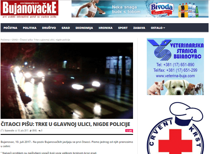 GRADNASLOVNAČitaoci pišu: Trke u glavnoj ulici, nigde policije Bujanovac, 10. juli 2017.- Na poziv Bujanovačkih javljaju se prvi čitaoci. Pismo jednog od njih prenosimo u celini:…10. July 2017.