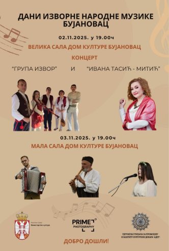 KULTURADani izvorne muzike u Bujanovcu Bujanovac, 27. oktobar 2025. Dani izvorne muzike, u organizaciji bujanovačkog Udruženja „Adet“, biće po prvi put održani u…27. October 2025.