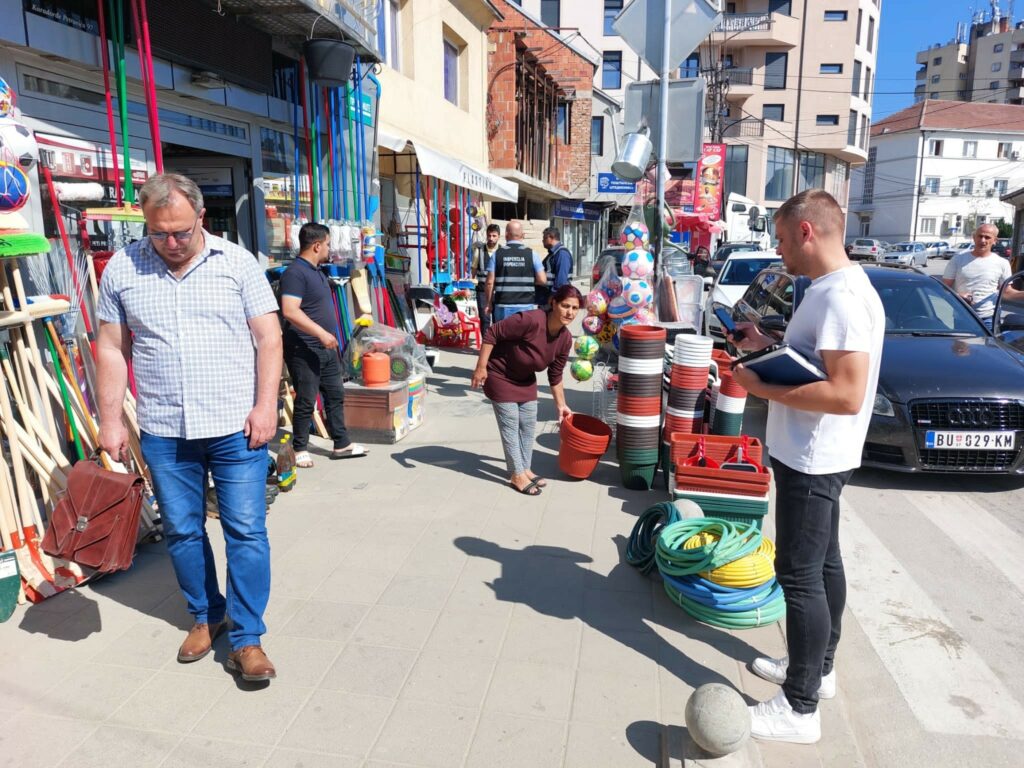 Bujanoc, 16. maj 2022. (Foto nga profili i Komunës në Facebook) – Të gjithë ata që kanë zënë hapësira publike pa autorizim, sot do të përballen me inspektorët komunal. Inspektorët kanë në shënjestër dyqanet që ekspozojnë mallra në trotuar përgjatë rrugës kryesore dhe pronarët e veturave të parkuara, pasi që – siç thuhet në njoftimin e Komunës – pengojnë lëvizjen e qytetarëve.