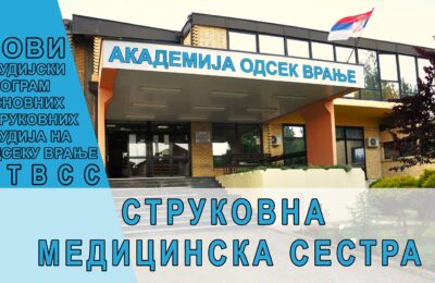 DRUŠTVONASLOVNAMedicinska sestra- novi smer na vranjskoj strukovnoj akademiji Bujanovac, 15. jun 2022. –Akademija tehničko-vaspitačkih strukovnih studija u Vranju u 2022/23 školskoj godini upisuje studente na studijski…15. June 2022.
