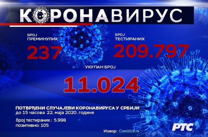 DRUŠTVOKORONANASLOVNADan bez preminulih od korone Bujanovac, Beograd, 22. maj 2020- Nijedan pacijent nije preminuo od kovida 19 u prethodna 24 sata. Testirano je…22. May 2020.