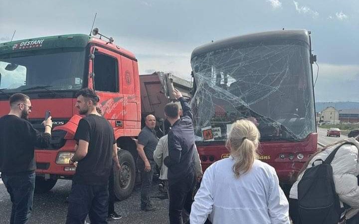 DRUŠTVONASLOVNAAutobus sa maturantima iz Preševa sudario se sa kamionom, sedmoro učenika lakše povređeno Bujanovac, 14. maj 2023. (foto Koha) – Autobus u kojem su se nalazili maturanti iz Srednje tehničke škole…14. May 2023.