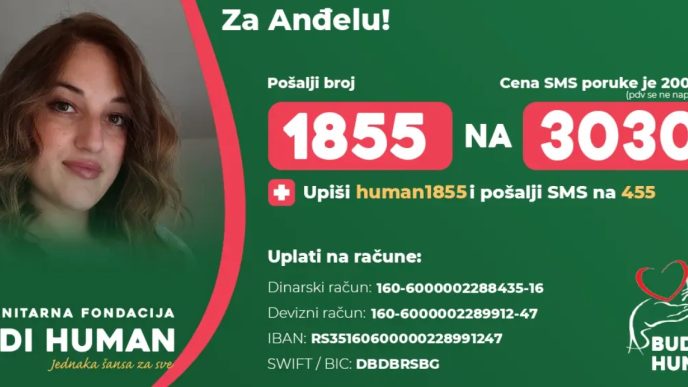 DRUŠTVONASLOVNAPomozimo Anđeli iz Žapskog! Humanitarna fondacija BUDI HUMAN prikuplja novčana sredstva za Anđelu Govedaricu (2000). Anđela je iz sela Donje Žapsko, udata je i…26. July 2025.