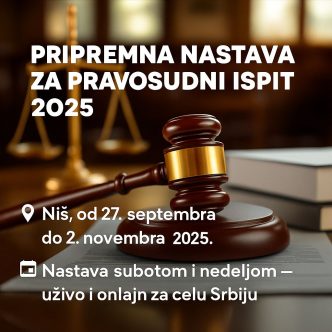 DRUŠTVONASLOVNAVelika prilika za pravnike sa juga: Pravosudni ispit sada možete spremati u Nišu Bujanovac, 11. avgust 2025. – Pravnici sa juga Srbije sada imaju priliku da u Nišu pohađaju pripremnu nastavu…11. August 2025.
