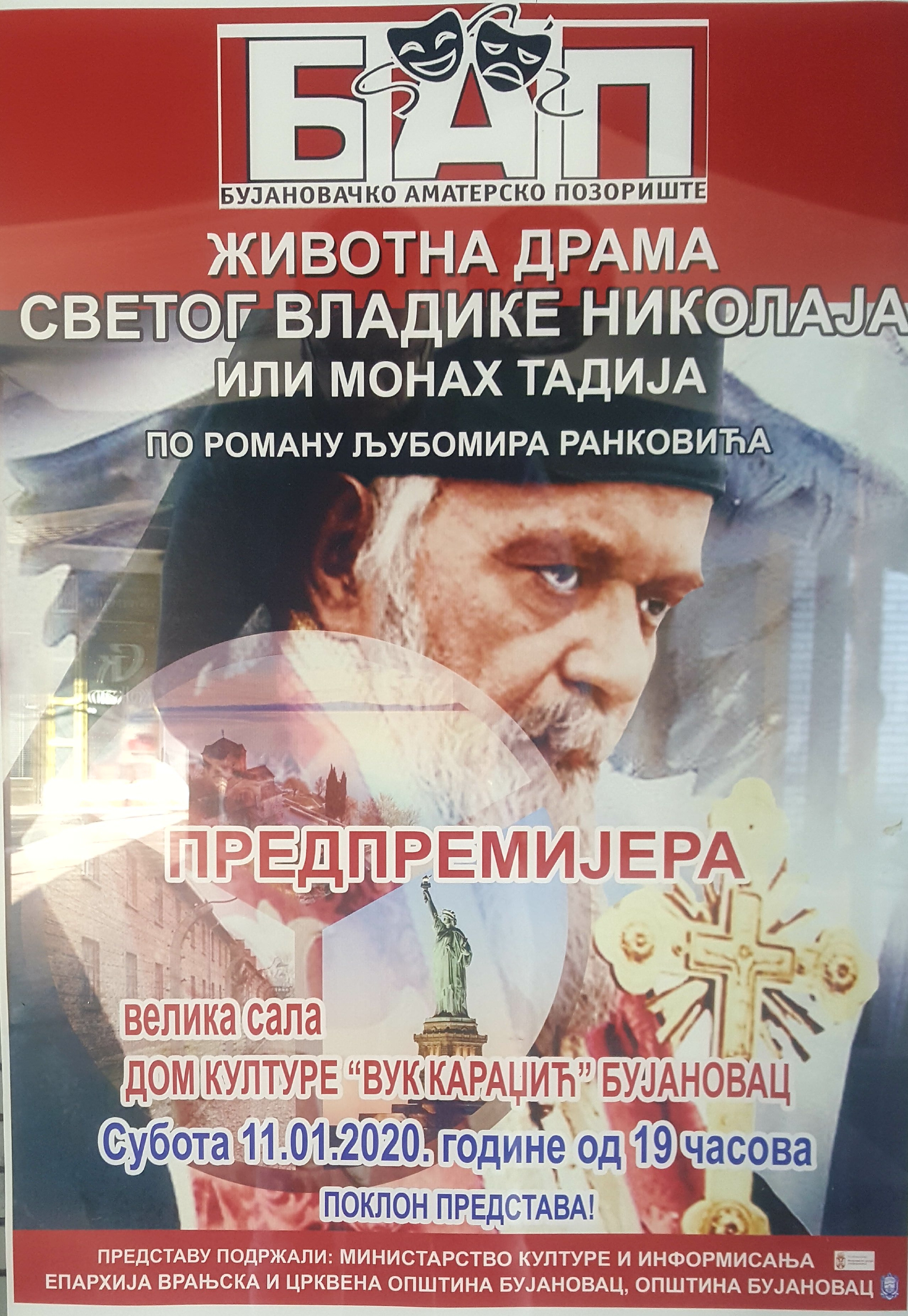 DRUŠTVONASLOVNAPozorište: Život i delo Nikolaja Velimirovića Piše: N. Stevanović Bujanovac, 8. januar 2019. Bujanovačko amatersko pozorište (BAP) izvešće pretpremijerno u subotu (11. januar)…8. January 2020.