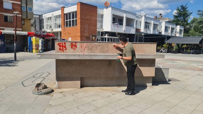 DRUŠTVONASLOVNAGrađanski gest Ragmija Mustafija: Sa sinom obrisao grafit Ratko Mladić sa trga u Bujanovcu Bujanovac, 7. septembar 2025. – Ragmi Mustafi, funkcioner PDD javno je, zajedno sa svojim sinom obrisao grafit Ratku…7. September 2025.