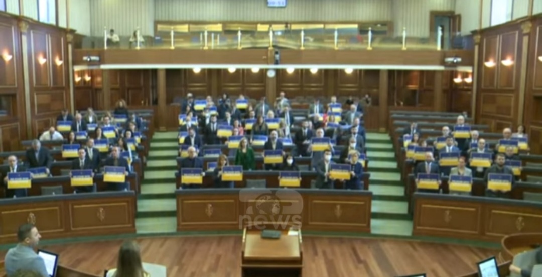 KOSOVONASLOVNAPOLITIKAKosovska skupština: Stojimo uz Ukrajinu Bujanovac, Priština, 3. mart 2022. (foto Youtube) – Kosovska skupština usvojila je u četvrtak rezoluciju o podršci Ukrajini…3. March 2022.