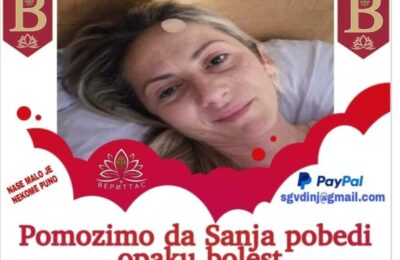 DRUŠTVONASLOVNASanja iz Ristovca živi pod nesnosnim bolovima, potrebna joj je naša pomoć za lečenje u Turskoj Piše: N. Stevanović Bujanovac, 12. avgust 2022. Sanji Nedeljković (34) iz Ristovca, supruzi Bujanovčanina Ivice Nedeljkovića Suske, potrebna…12. August 2022.