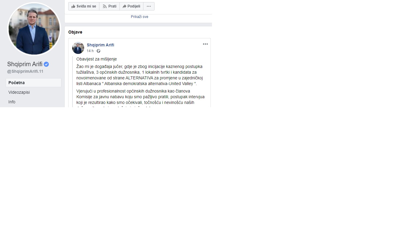 NASLOVNAPOLITIKAŠćiprim Arifi optužuje opoziciju i “stare snage” za hapšenje svojih saradnika Bujanovac, Preševo, 6. jun 2020. (Foto FB printskrin) – Predsednik opštine Preševo Šćiprim Arifi optužio je lokalnu “opoziciju…6. June 2020.